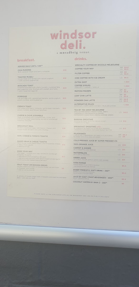Windsor Deli offers a delightful selection of dishes for both breakfast and lunch, making it a great spot to enjoy a delicious meal throughout the day. Starting with the Breakfast Menu, guests can indulge in simple yet flavorful options like Eggs, French Toast, and Avocado Toast. For those looking for a heartier start to the day, the Porridge is also available, with optional sides to customize your meal to your liking.